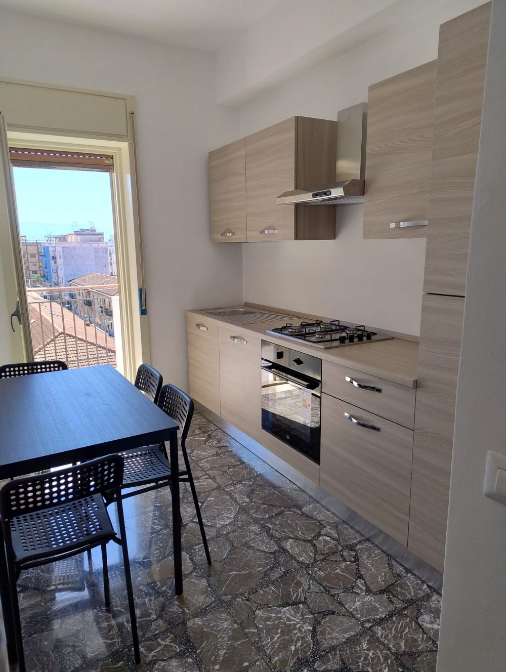 L'appartamento, da poco totalmente ristrutturato, offre ambienti luminosi e confortevoli: quattro camere singole, una cucina, due bagni riammodernati e un ampio balcone. È completamente arredato con mobili moderni e attrezzato con tutti gli elettrodomestici, aria condizionata e connessione Internet.